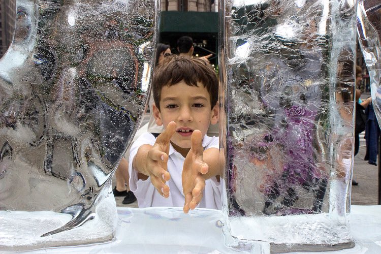 is Nora Ligorano and Marshall Reese’s public art project of words carved in ice. Since 2006 Ligorano and Reese have installed 7 different sculptures in 11 different cities across the United States at the Republican and Democratic presidential conventions and other political events, including the 79th anniversary of the Great Depression in 2008, the Peoples Climate March in 2014 and the Brett Kavanaugh hearings in 2018. These event based installations are performative and durational. No one ever really knows when and what will happen except that the sculptures eventually disappear and melt away.