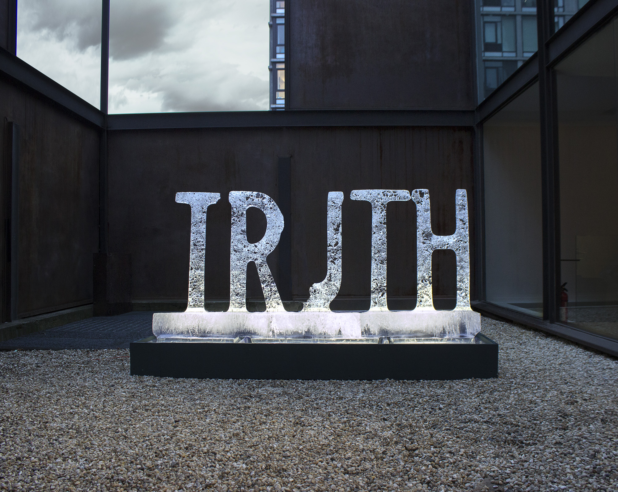 By Evan Siegel, The Daily Beast, January 24, 2018 Visitors to New York’s Jim Kempner Fine Art in West Chelsea this past weekend were quite literally confronted with truth. The word was there in the courtyard, spelled in capital letters—a 3,000-pound sculpture of the word, bolded and made entirely of solid ice. At the time of installation, it was about…